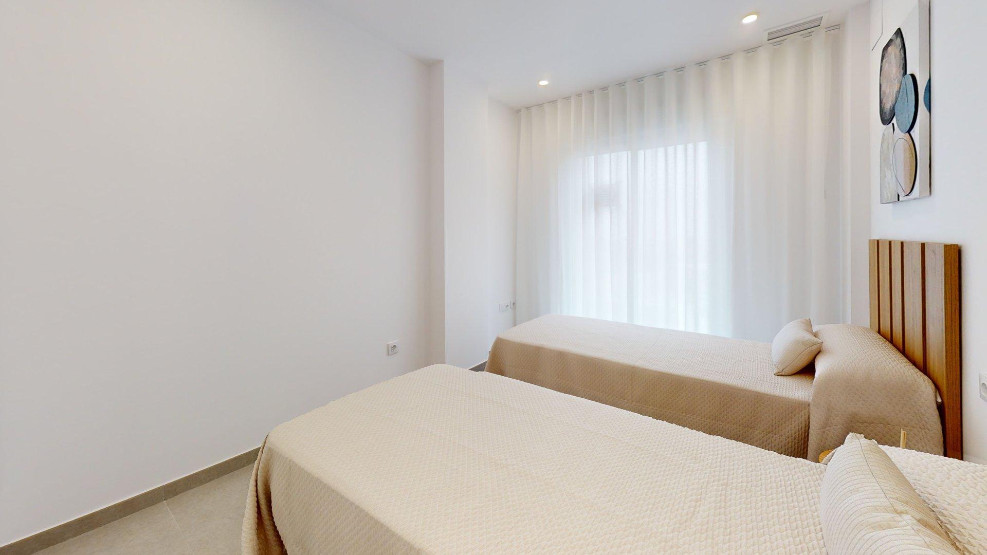 Experience living in the exclusive Miradores del Puerto apartment, located in the vibrant La Manga neighborhood, just a 50-meter walk from the beach and promenade. From the balcony and the apartment itself, you have sea views of both the Mar Menor and the Mediterranean Sea. Enjoy your fully equipped apartment with 2 bedrooms and 2 bathrooms. The apartment features a communal swimming pool and a paddle tennis court.